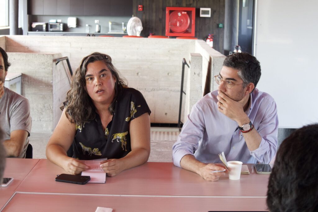 Daniela Rubio, Gerenta de Vinculación Ciudadana de la DTPM, junto a Giovanni Vecchio, investigador adjunto de CEDEUS
